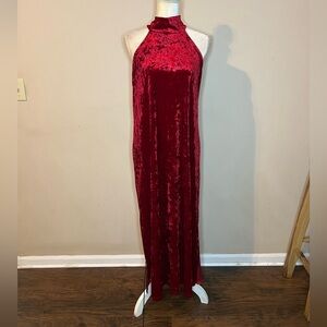 💃🏻Bar lll Elegant Red Halter Neck Velvet Dress
