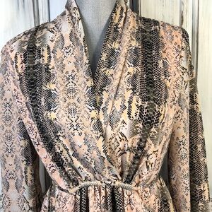 Bar lll Like New Longer Mid Sleeves Faux Wrap Bodice Snake Pattern Dress Size S