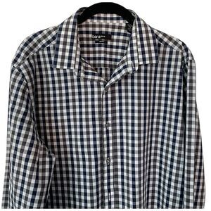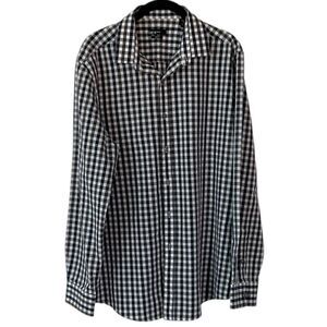 Blue/black, white and grey casual long sleeve button down shirt. Size L, 16 - 16.5, 34-35 Never worn, new without tags.