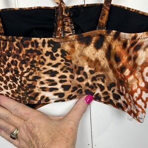 Bar lll Woman’s Swim Top M Brown/Cream Glam Cheetah Padding Adj Straps Stretch