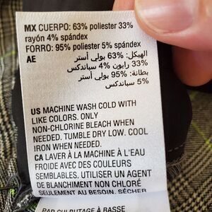 Polyester/rayon/spandex; lining: polyester/spandex; trim: nylon/metal/polyester/resin