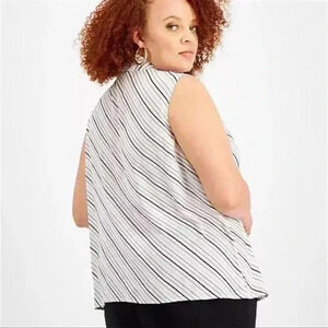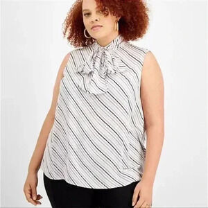 Bar III Bias Striped Tie-Neck Blouse 1x & 2x