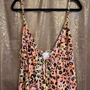 Bar III Plunge Cut Pink Yellow Cheetah Print Swim Cover-Up Maxi Dress Large NWT
