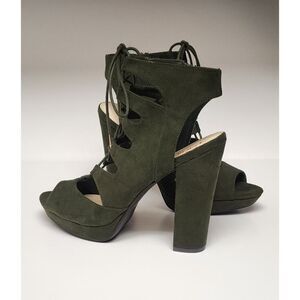 Bar III Women's Faux Suede Nelly Green Lace Up Platform Bootie Sandal Shoe 11M These shoes are in excellent pre-owned condition with no flaws. Please see pictures for more details.