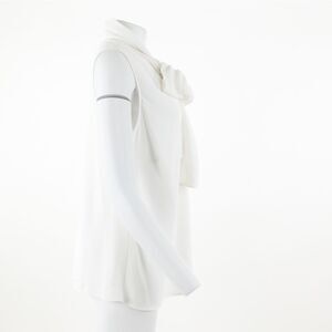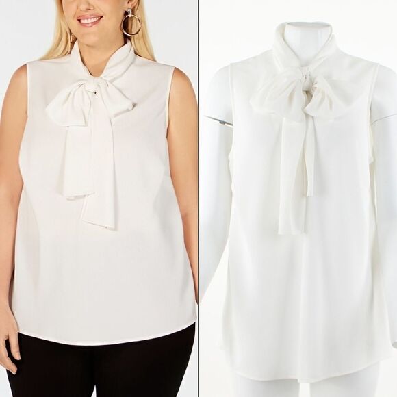 A classic tie details adds polished coverage to the neckline of this plus size sleeveless blouse from Bar Iii.