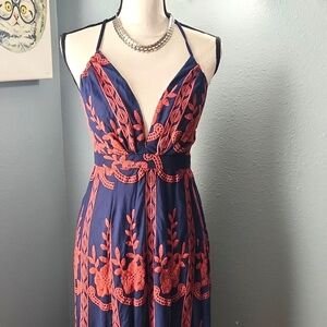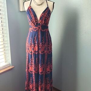 BarVely Lace Empire Waist Embroidered Maxi Dress