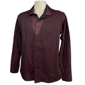 Barabas Designer Burgundy Button Up Dress Shirt Medium Contrast Collar Flip Cuff