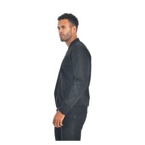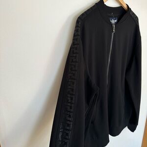 Barabas Men’s Black Greek Fret Monochromatic Rhinestone Tuxedo Sleeve Stripe Zip Jacket