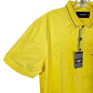 Barabas Mens Yellow Polo Shirt XL Burnout Leaf Pattern Preppy Casual Athleisure