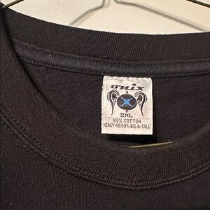 Stylish black graphic t-shirt featuring a unique design.