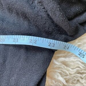This beautifully soft sweater is lightweight and features a crewneck with a nice, grainy texture. It is slightly sheer. There is a tad of roughened fabric on the inside of the neck and a not-quite-pulled thread by the right arm when wearing (see photos). Only worn once or twice by my husband. Let me know if you have any questions.