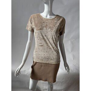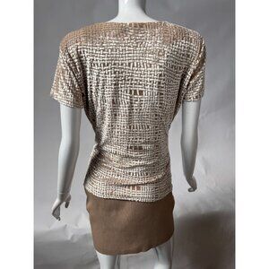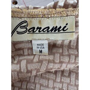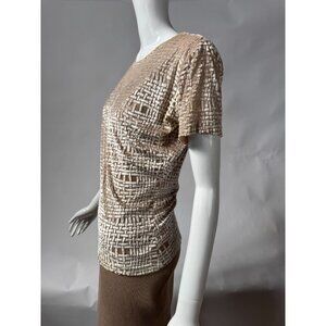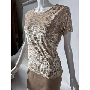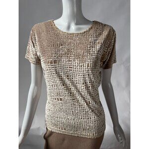Barami Womens M Short-Sleeve Textured Top Beige Cream Woven Pattern Rayon/Polyes