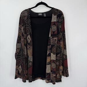 Baranda Woman Attached Top Cardigan size 2X Black Multicolor Art to Wear Boho