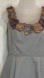 Elegant and feminine Baraschi cocktail dress featuring a stunning 3D rosette neckline in neutral taupe and mocha tones. Crafted from crisp cotton with a fully lined interior for a flattering silhouette. Side pockets add a functional touch, and the back zip closure ensures a perfect fit. Ideal for weddings, cocktail parties, and special occasions.