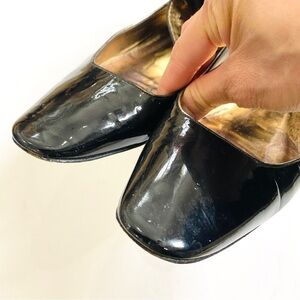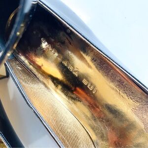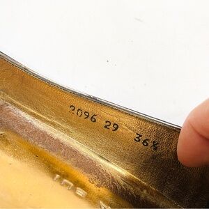 Barbara BUI black and gold patent leather buckle ankle flats