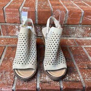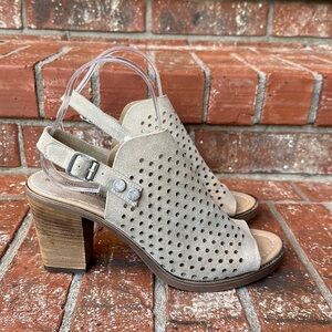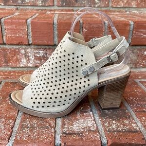 Barbara Barbieri Perforated Suede Sling Back Beige Heeled Sandal Women's Size 10