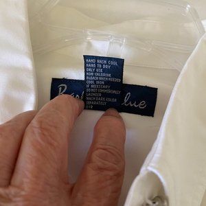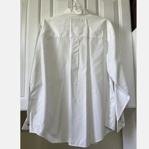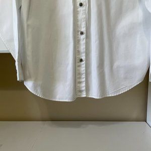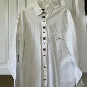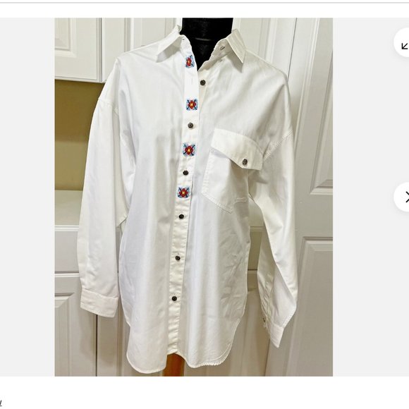 Barbara Blue White Long Sleeve Women Button Up Collared Shirt L Beaded Front