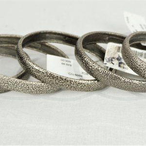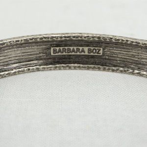 Designer Barbara Boz silver tone hammered design bracelet. Excellent unused condition. All 5 are new; three still have the tag intact. Oval dimension makes it easier to slide on and off. Original retail price was $55. See my other Dark Silver and Rhinestone Barbara Boz listings.
