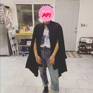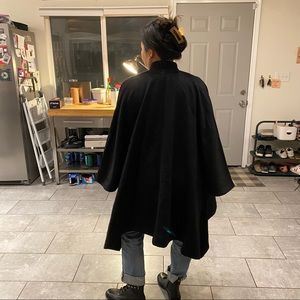 Gorgeous midnight black, wool lined, oversized coat that converts into a cape. This beautiful piece has two front pockets, a zipper and bomber collar. Understated, and yet elegant with an edge, sure to be a closet staple. Never been worn, in excellent condition.