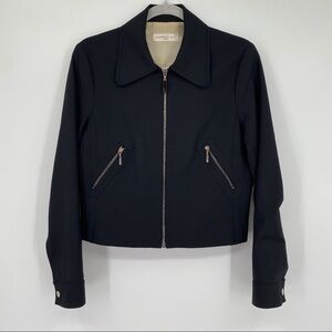 Barbara Bui Laine Wool Blend Zipper Collared Black Gold-tone Fashion Jacket XS