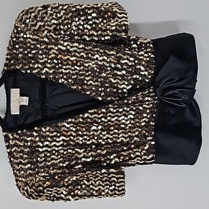 Barbara Chodos for Michael Marcella Gold Sequined+Black Taffeta Evening Jacket