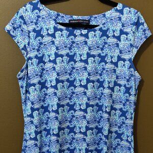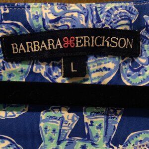 Barbara Erickson Navy/Seafoam Elephant Dress SIZE LARGE