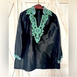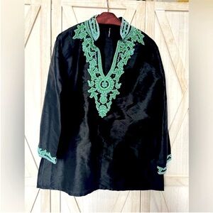 Barbara Gerwit Black Taffeta Beaded Tunic Top Size M