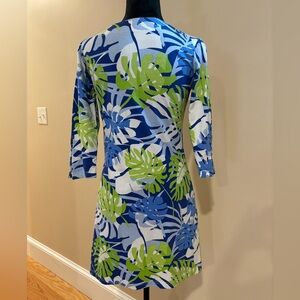 Barbara Gerwit Leaf Print Midi Dress Tropical Quarter Sleeve Size XSmall