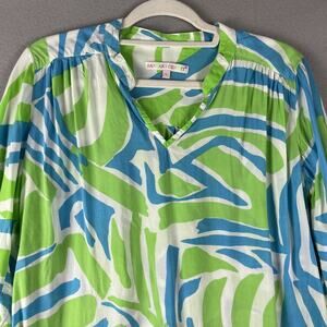 Barbara Gerwit Tunic Top Womens Large Printed 3/4 Sleeve Hawaiian Aloha Tropical
