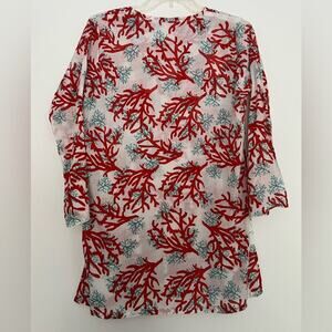 Barbara Gerwit White Red Blue Coral Pattern 3/4 Sleeve Tunic