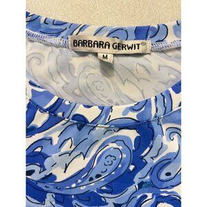 Barbara Gerwit Womens Blue & White Paisley Short Sleeve A-Line Dress Medium
