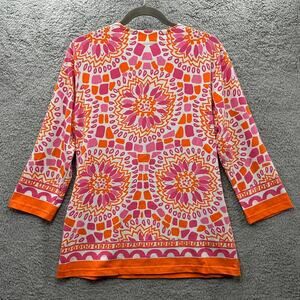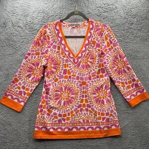 Barbara Gerwit Women's XL Colorful V-Neck Top Orange Pink Fun Bright Vacation