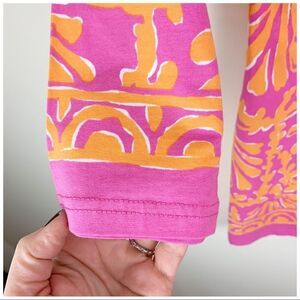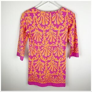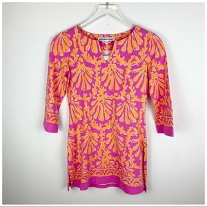 Barbara Gerwit Women’s Stretchy Cotton Pink and Orange 3/4 Sleeve Preppy Tunic Sz XS NWT. Two side hem splits for comfort and movement. A very soft comfy cotton. Could be a great cover-up for the pool or beach. Lightweight and cool. Please see photos for additional details. Pit to Pit 16“ Length 29“ Sleeve 16“