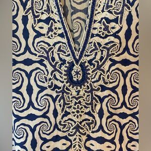 Barbara Gerwit Sz S Blue & White Heavily Beaded Design Cotton Beach SummerTunic