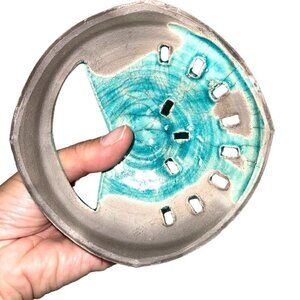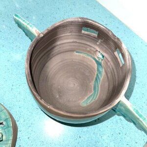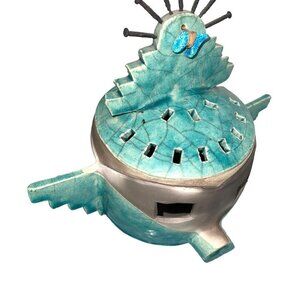 Barbara Heard Ceramic Lantern Signed Bird Head Blue Gray Handmade Pottery Candle