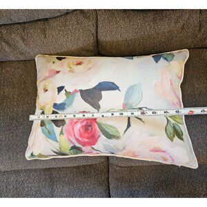Barbara King Floral Decorative Spring Pillow. Zippered cover. No obvious signs of wear. No stains, rips or tears. Gently used preowned condition. Made of 100% Polyester. Please see pictures for measurements and details.