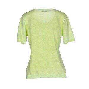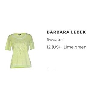 The Barbara Lebek Womens Light Green Short-Sleeve Cotton Sweater in size 12 is a chic and versatile piece that adds a touch of elegance to any wardrobe. Crafted from a tight-knit 100% cotton fabric, this pullover features a solid light green color accented with delicate rhinestones, offering subtle sparkle and refined style.