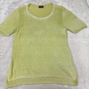 Barbara Lebek Women's Light Green Short Sleeve Cotton Rhinestones Sweater Sz 12