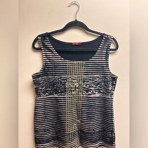 Barbara Lesser Elegant Black and Cream Striped Tank Top