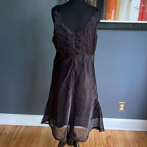 Barbara Lesser vintage sheer crinkle lined V front & back neckline slip midi. Light sheen. Inverted V bodice seams. Invisible back zipper. Polyester/rayon blend. Lining 100% nylon. Medium. Excellent condition. Nonsmoking home.