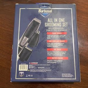 Barbasol Portable Battery Powered All in 1, 7 Piece Beard Grooming Set with Ear and Nose Trimmer, Foil Shaver and Beard Trimmer with Stainless Steel Blades and Stand