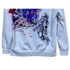 Barbed Rose Digital Print Hoodie Sweatshirt Size Medium White With Spaceman - Unisex