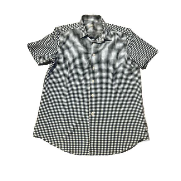 Barbell Shirt Mens M Medium Button-Up Blue Check Collared Short Sleeves Casual