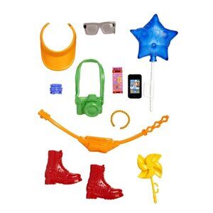 (1) Amusement Park Theme: Items include fashion accessories like a hat, belt bag, and shoes, as well as storytelling pieces like an admission ticket, balloon and camera that enhance the day-out theme