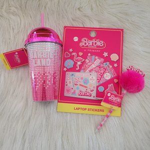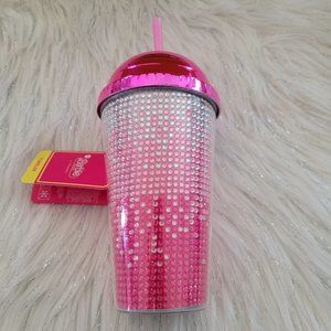 "Barbie Land" tumbler with straw (stone accents/metallic top)