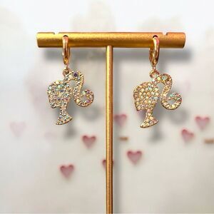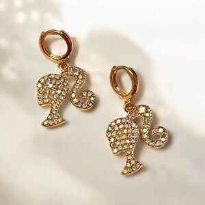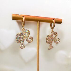 Barbie Aurora Borealis Rhinestone Gold Tone Dangle Earrings NWT