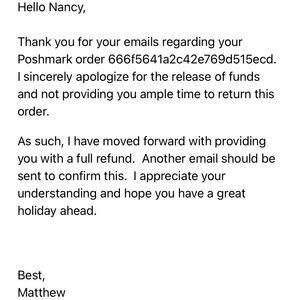 @bf158 first I never begged I demanded and told you if you do not take your jacket I will have it return and get my money and will never beg you lol and for days? Anyways my money is in my account with excuses from poshmark and I have a brand new beautiful free jacket it doesn’t get any better than that…
