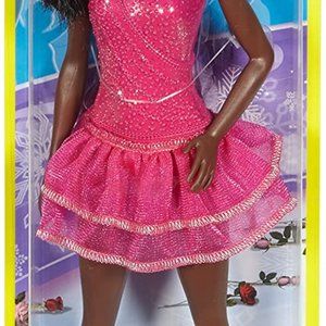 Barbie ice skater doll will wow wearing a pink ice skating costume with sparkling top and sheer ruffled skirt. White ice skates are perfect for practice or competition, and a silvery trophy (with its own ice skater!) rewards a flawless routine!