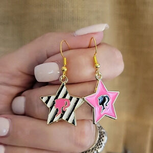 Sweet Valley High style Barbie! Painted enamel on nicely weighted goldtone with stamped sterling silver wires.