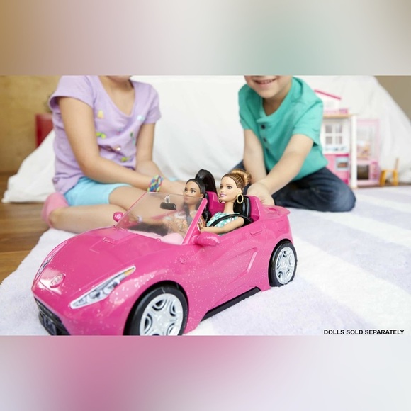 Barbie Convertible Toy Car, Sparkly Pink 2-Seater with Rolling Wheels